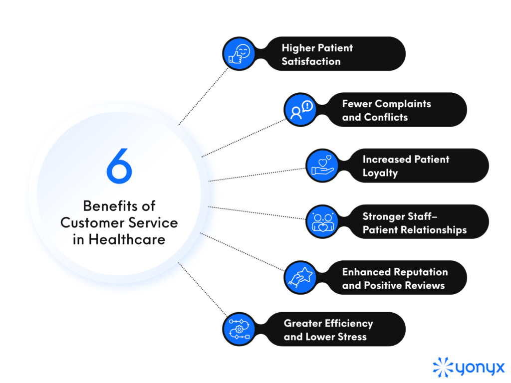 Good customer service not only enhances the patient experience but also generates measurable benefits across the entire healthcare system. These benefits are illustrated in the infographic below.